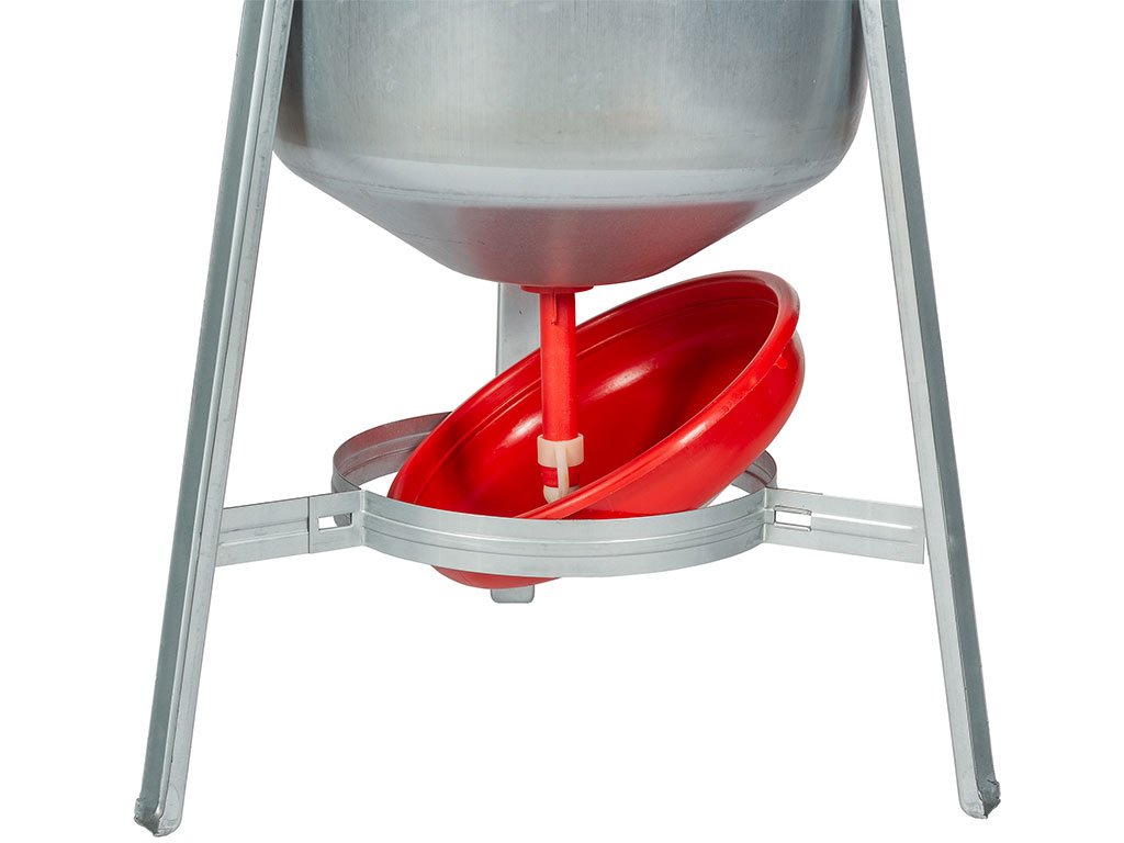 Barelová napájačka pre hydinu s miskou a 30L zásobníkom do 90 sliepok krmítko ØxV 450x710 mm, miska V 170 mm.
