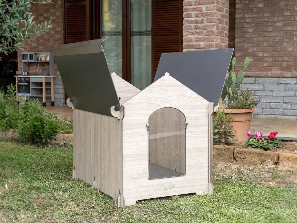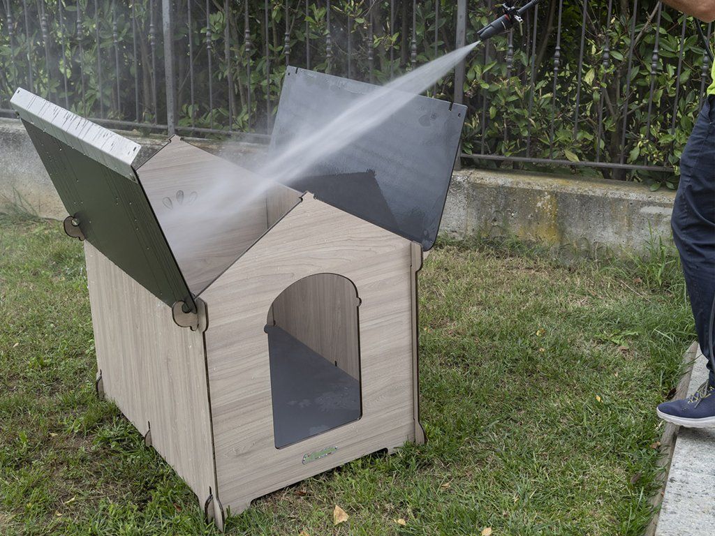 - Psie búda vyrobená touto inovatívnou technikou je vodotesná, odolná voči zápachu a neuvoľňuje žiadne toxíny nebezpečné pre životné prostredie a pre zdravie psa.